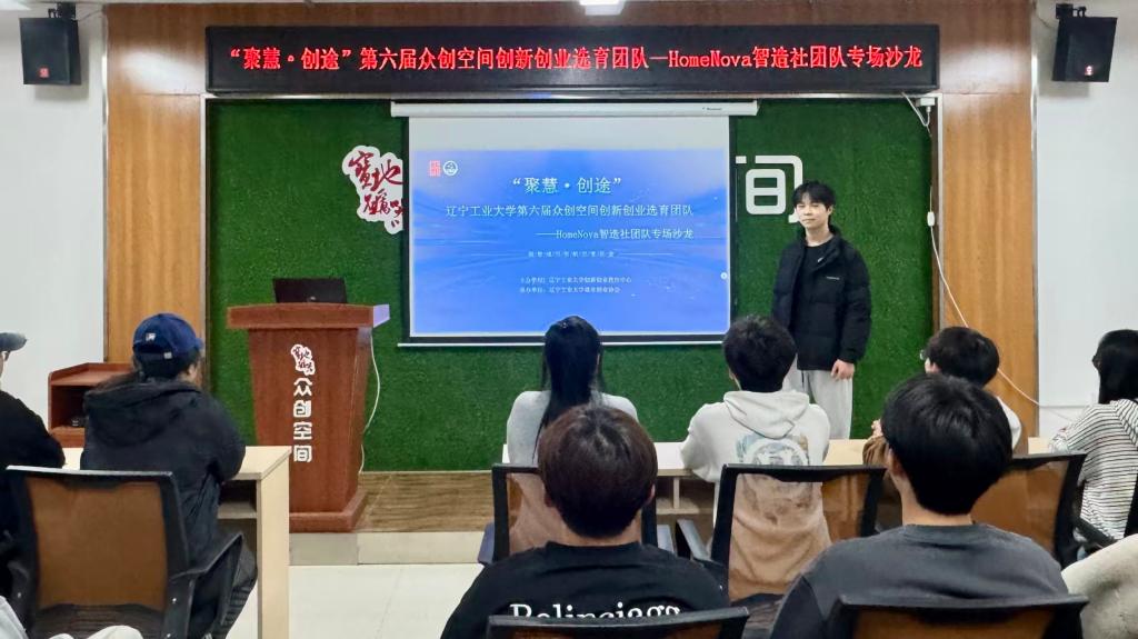 11月15日晚,“聚慧・创途” 第六届众创空间创新创业选育团队沙龙第四期在众创空间实训楼D403成功举办!本次专场聚焦 “宜居社区现代化改造的可行性方法分析”,HomeNova 智造社团队主讲人杨润双携精彩分享亮相,与现场同学共探科技赋能社区的创新之道!“宜居社区现代化改造的可行性方法分析”吸引了各学院同学积极参与,现场交流氛围热烈